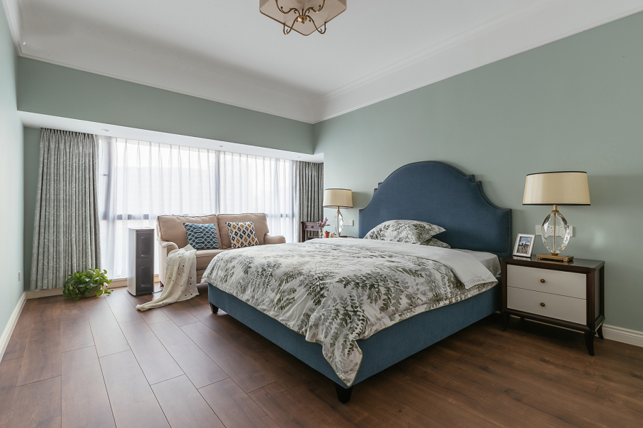 6、臥室的布光講究主次分明,在主體照明上可選擇造型簡(jiǎn)潔的吸頂燈,而在輔助照明上可選擇臺(tái)燈、射燈或壁燈等較小的燈具,不僅能夠在夜晚照亮臥室,而且還能夠營(yíng)造浪漫溫馨的居住氛圍。